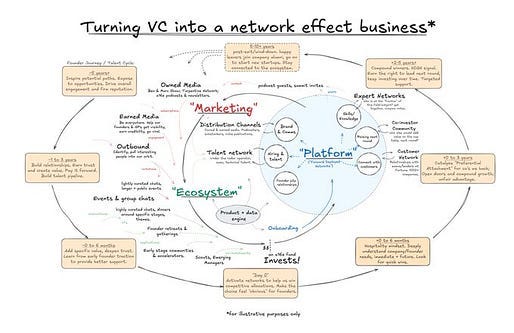 a16z raising $10B across new vehicles - $6B for growth, $1.5B each for AI apps and AI infra, plus $1B for “American Dynamism”. Firm’s strategy: convert its vast founder network into enduring infrastructure - a compounding model reshaping venture itself. See diagram below (and here and here).
